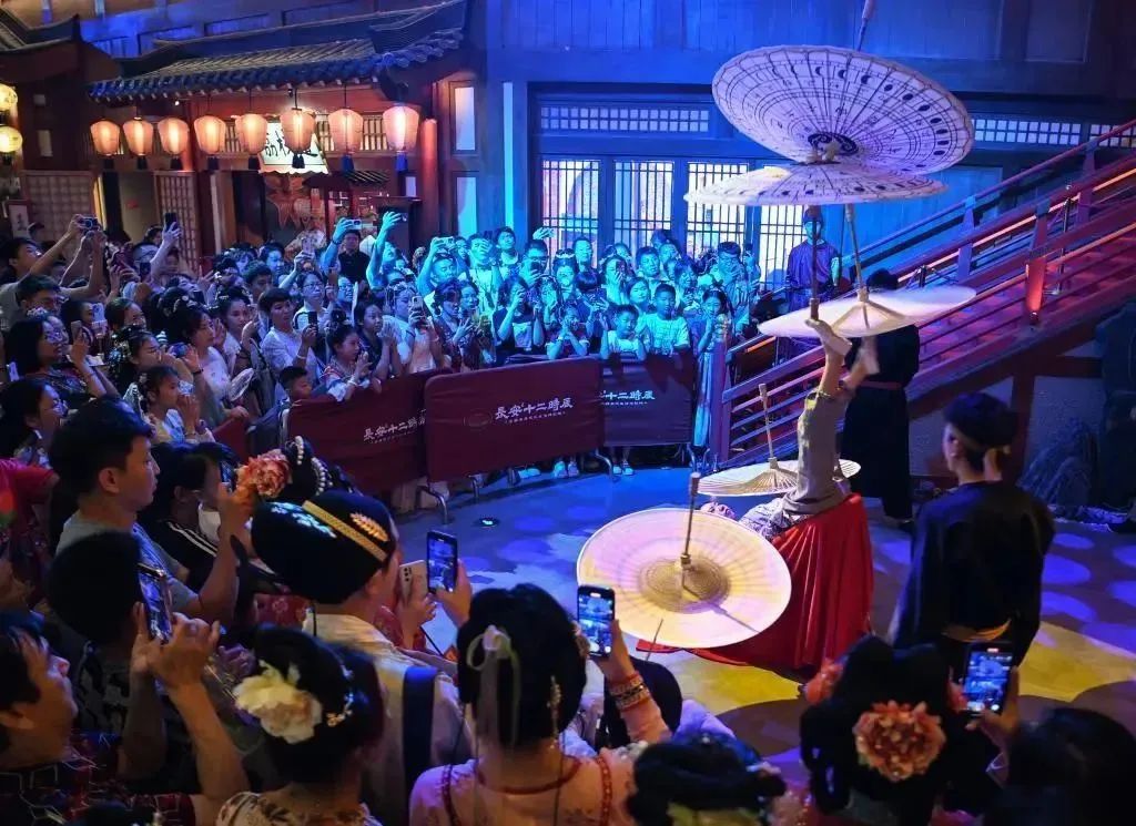 主题街区项目负责人邹林丰介绍:“唐代上元佳节的热闹、‘万国来朝’的震撼、盛唐诗坛巨匠的风采,这些原本只能通过文字或语言传达的内容,如今通过一场场旅游演艺生动展现在游客面前,这是文化和旅游深度融合的产物;从游客的热捧来看,也满足了人民群众对旅游活动更富底蕴、更具体验性的要求。”