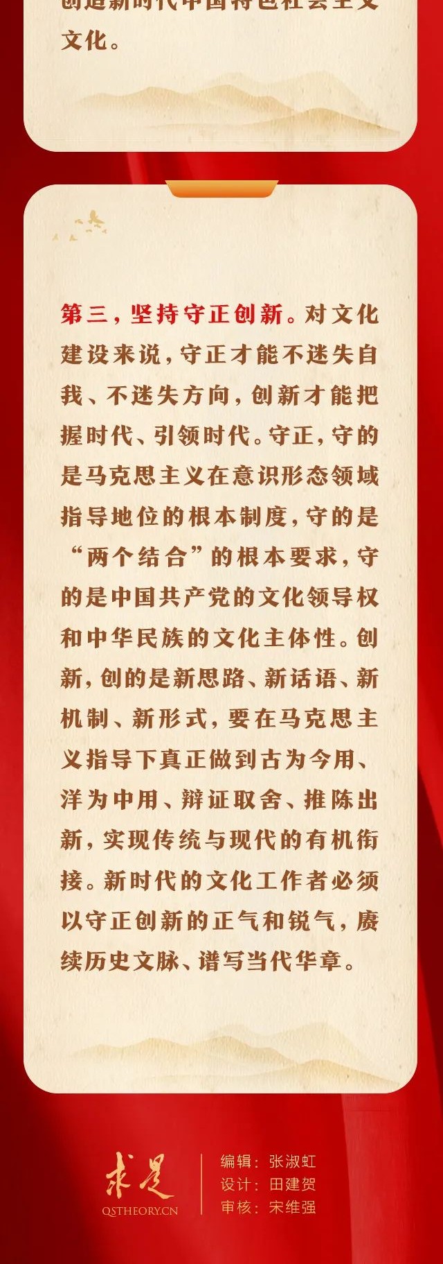 9月1日出版的第17期《求是》杂志刊发习近平总书记重要文章《在文化传承发展座谈会上的讲话》。在这篇重要文章中,总书记强调要更好担负起新时代新的文化使命,并从3个方面提出明确要求。