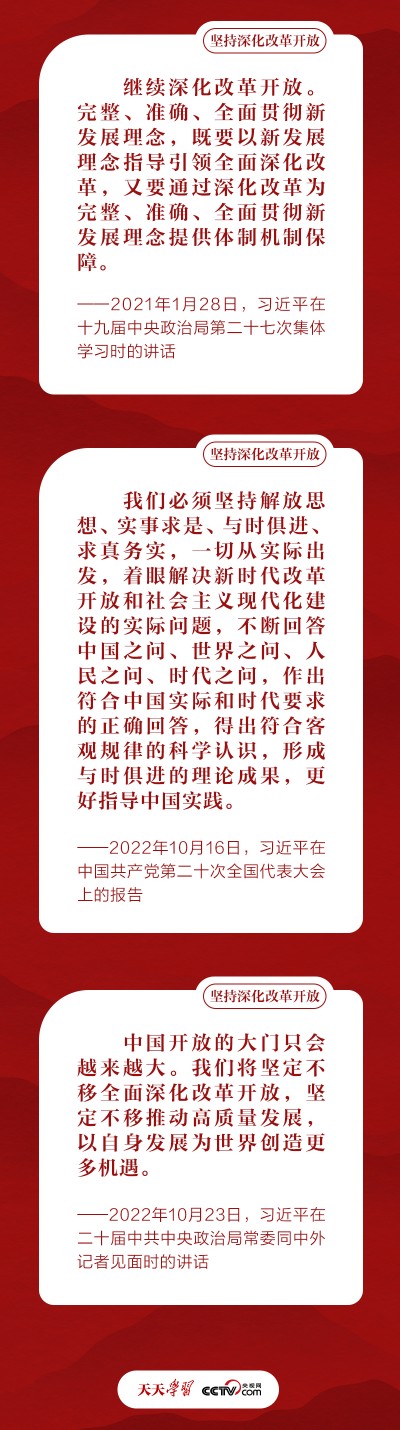 央视网《天天学习》特推出长图解,与您一起学习感悟总书记对坚持深化改革开放的重要论述。