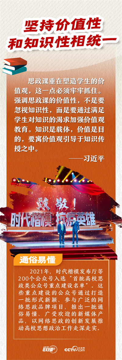 习近平总书记指出,推动思想政治理论课改革创新,要不断增强思政课的思想性、理论性和亲和力、针对性,并提出“八个相统一”教学要求。“八个相统一”言简意赅,深刻精辟,为推进新时代思政课建设指明了方向。