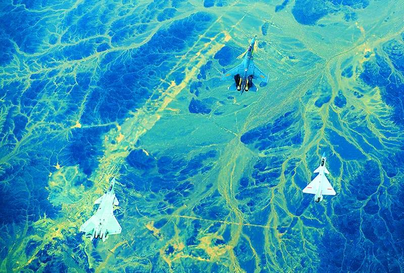 中国空军歼-20、歼-16、歼-10C战机编队飞行训练 杨军/摄