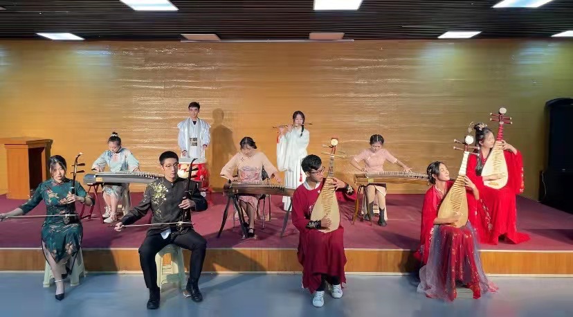 朗诵组合以《吹号者》为题材,树立了吹号者的高大形象,在建党百年之际,以满腔热情歌颂了为祖国繁荣富强前赴后继的革命英烈。民乐小合奏《盛世国乐》尽显新时代中华大地盛世恢宏的豪迈壮景,用青春奏响了华美乐章,演奏中洋溢着青春的梦想,表达出天农学子对祖国最深情的祝福。歌手组合演绎的《重返十七岁》,用优美舒缓的旋律唤起了观众对校园时代的美好回忆。活动中,我校学生以艺术表演形式,充分展现了天农学子爱党爱国爱农爱校的价值追求和昂扬向上的精神风貌。