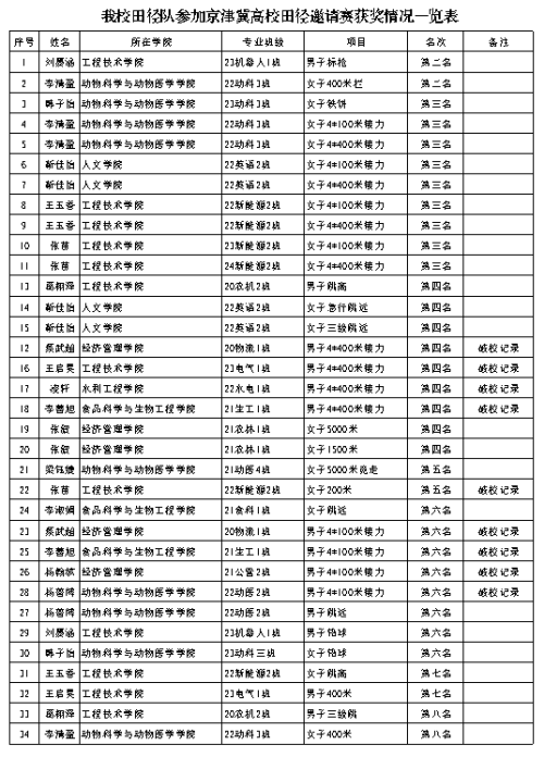我校田径队在2024年京津冀高校田径邀请赛中荣获佳绩