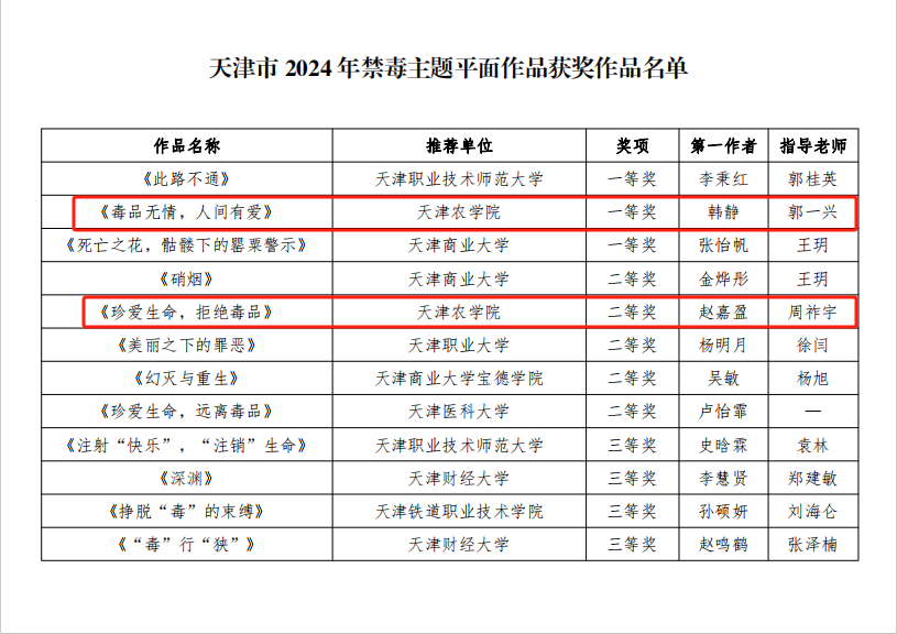 近日,在由市学校思想政治教育新媒体中心、天津市禁毒办联合开展的“天津市2024年高校禁毒主题系列活动”中,我校师生积极参与,并荣获多项荣誉。