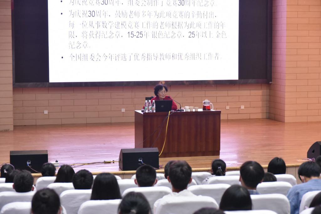 10月14日,中国工业与应用数学学会数学建模专业委员会委员、天津大学理学院退休教师边馥萍教授在我校敏学楼大礼堂做了题为《数学建模赛题点评与经验交流》的专题讲座。