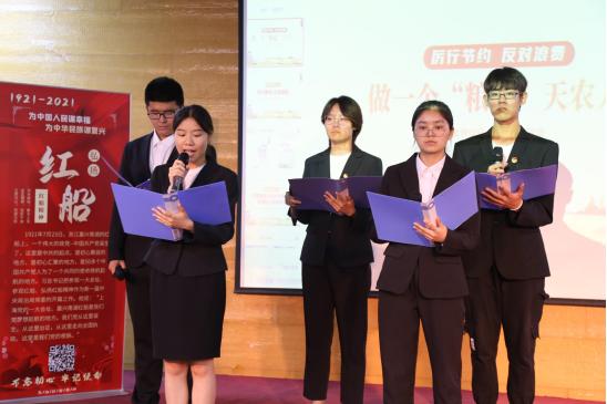 自五月下旬启动党史知识竞赛以来,我校万余名学子积极参与了线上竞答。本次共有四支队伍入围决赛。决赛设置必答题、挑战题、论述题三个环节。选手们全神贯注,积极作答,展现了他们扎实的党史知识储备和融洽的团队协作,现场响起阵阵热烈掌声。论述题环节,四支代表队从珍惜粮食、脱贫攻坚、抗击疫情、神舟十二号升空、五四精神等角度结合个人小我融入祖国大我展开论述,他们通过情景剧、歌曲、朗诵等表现形式展开论述,深刻形象阐述了青年理想与国家命运紧密相连,青年悟原理、明使命的重要意义。马克思主义学院袁云副教授进行了精彩点评。她说到:“今天,四支队伍表现非常精彩,令人感动。这不仅仅是一场知识竞赛,更是一堂动起来的思政课,展现了党史鲜活的生命力,引导我们广大团员青年主动学、生动学、比着学党史。今年是两个一百年的历史交汇期,更是十四五规划的开局之年,学习“四史”,特别是党史尤为重要。希望我们广大团员青年在学习感悟中志存高远,以青春之我创造青春之中国!真正做到爱党、爱国、爱农、爱校,为实现“两个一百年”奋斗目标、实现中华民族伟大复兴的中国梦而奋斗。”