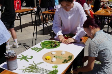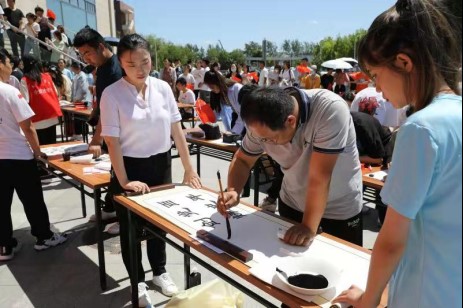 在《我爱你,中国》的悠扬笛声中,我校第十八届社团月主题活动正式启动。伴随着大学生艺术团的器乐合奏,书法、种艺画、插花、绘画、相声、象棋、茶艺展示同步开展。社团指导教师代表张胜起老师现场书写《百年党史创辉煌思源奋进谱华章》寄语全体社团同学,种艺画《思源天农》,压花《光盘行动》,还有绘画作品《天农园》《校训石》,同学们用作品描绘理想、发出倡议、展示风采,赢得了在场师生的阵阵掌声。茗启茶友社现场展示茶艺并为同学们奉上一杯杯清茶。人文学院桃灼汉文化社为大家带来先秦时期的曲裾、汉服襦裙、明制汉服、唐装坦领等中国华服,让现场师生领略到了中华优秀传统文化的韵味悠长。一曲《天耀中华》,社团同学用深情歌声送上了对祖国最美好的祝福。