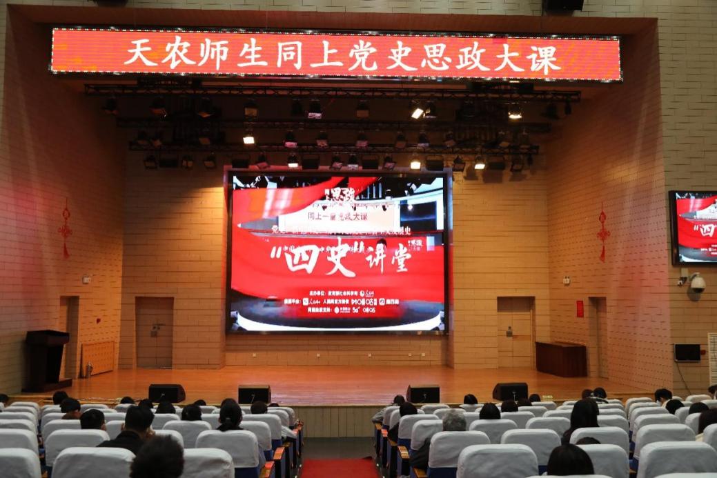 4月24日,我校组织学工干部、马克思主义学院教师及全体学生收看了由教育部社科司与人民网联合举办的“同上‘四史’思政大课”第一课——党史思政大课直播。此次思政大课由北京师范大学马克思主义学院赵朝峰教授、武汉大学马克思主义学院卢勇副教授、南京航天航空大学马克思主义学院何畏教授分别以《马克思主义与中国共产党的百年辉煌》、《中国共产党与中华民族的伟大复兴》、《中国共产党革命精神形成与传承的百年历程》为题,从不同的视角为我们清晰梳理了百年党史发展历程的脉络,为我们带来了一场丰富的精神盛宴。