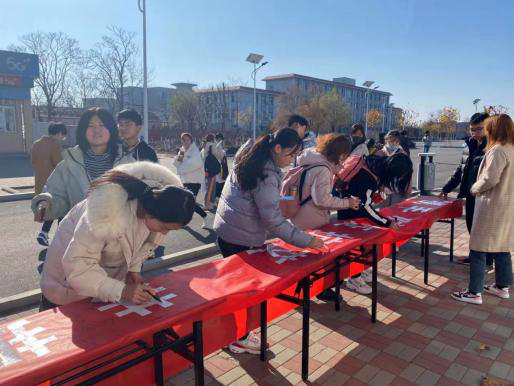 在活动期间,学校还开展了“携手防疫抗艾 共担健康责任”主题签名活动,防疫抗艾宣传志愿者在教学楼、宿舍楼、食堂等公共场所张贴宣传海报,向师生发放预防艾滋病教育宣传单,现场讲解有关世界艾滋病日、校园红丝带、艾滋病危害性和预防艾滋病方法等相关知识,倡导健康文明的生活方式。