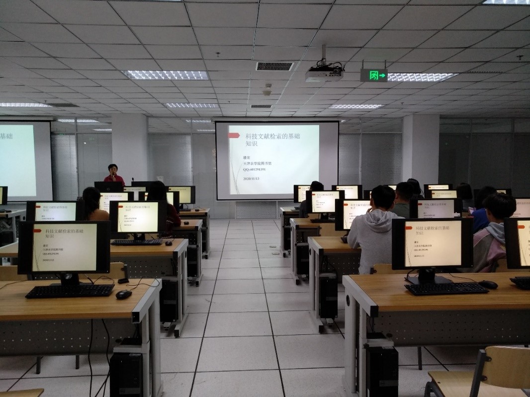 为落实全国和天津市研究生教育会议关于培养创新人才的要求,充分发挥图书馆数据资源在创新型人才培养中的基础作用,11月13日,我校在图书馆一楼文献检索实训室举办了一场面向硕士研究生新生的数据库培训讲座,由图书馆信息部潘宏老师担任主讲,多名馆员参与协助上机辅导。
