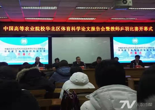 1月8日-12日由中国高等农业院校华北区体育理事会主办的体育科学论文报告会暨教职工乒乓球、羽毛球比赛在河北农业大学隆重举行,我校体育教学部7名教师参会。