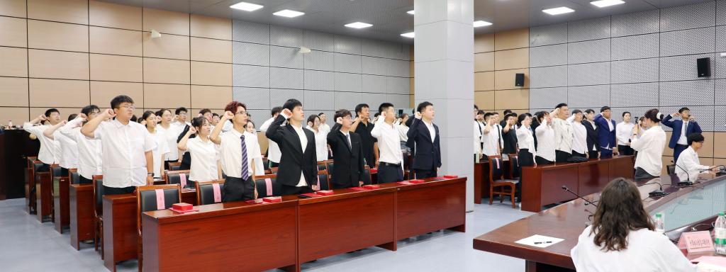金危危和与会领导分别为校院两级校友工作联络员颁发聘书。会上,举行了2024届校友工作联络员岗前培训,并由水利工程学院许麟利同学带领全体2024届校友工作联络员进行宣誓。