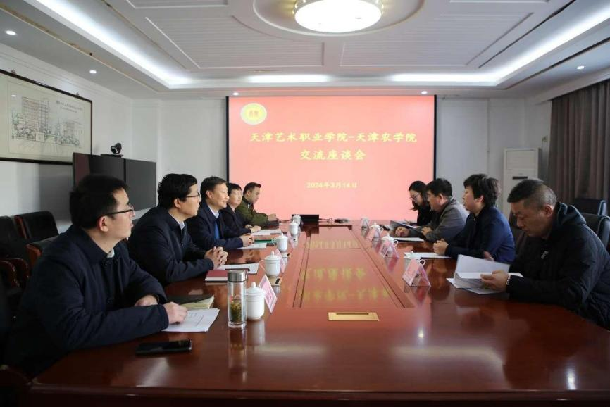 3月14日,天津艺术职业学院党委书记孟繁华一行来我校座谈交流。校党委副书记宋涛会见来访客人并参加座谈会。