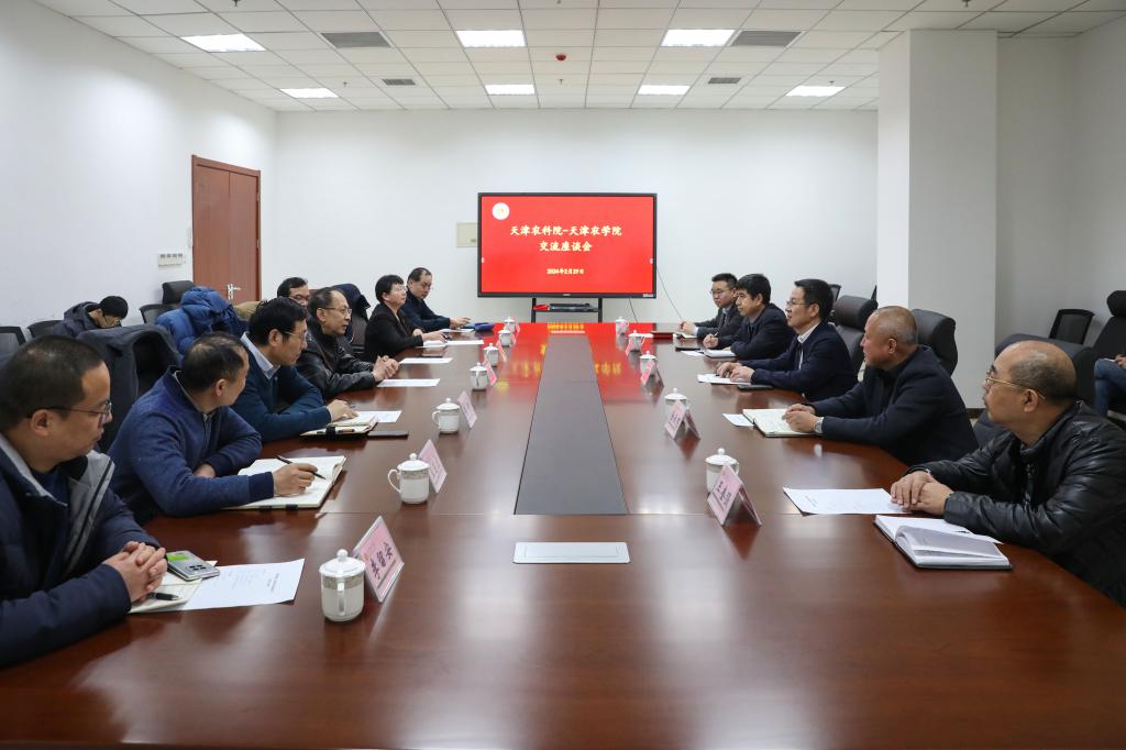 2月29日,天津市农业科学院党委书记李金田,党委副书记、副院长金天明一行到我校访问。校党委书记王延文,校党委副书记、校长金危危,校党委常委、副校长张民会见来宾,并进行座谈。