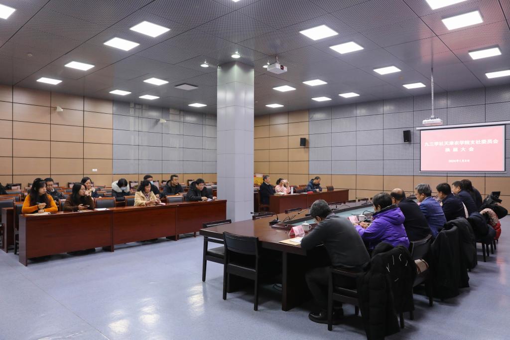 1月3日,九三学社威客电竞支社委员会换届大会召开。全国人大代表、九三学社天津市委员会副主委、天津理工大学研究生院院长、学科办主任王劲松,九三学社天津市委员会组织部负责人、三级调研员李静,西青区政协常委、九三学社天津市西青区基层委员会主委、天津城建大学计算机与信息工程学院副院长刘毅出席会议。校党委副书记宋涛出席会议并致辞。