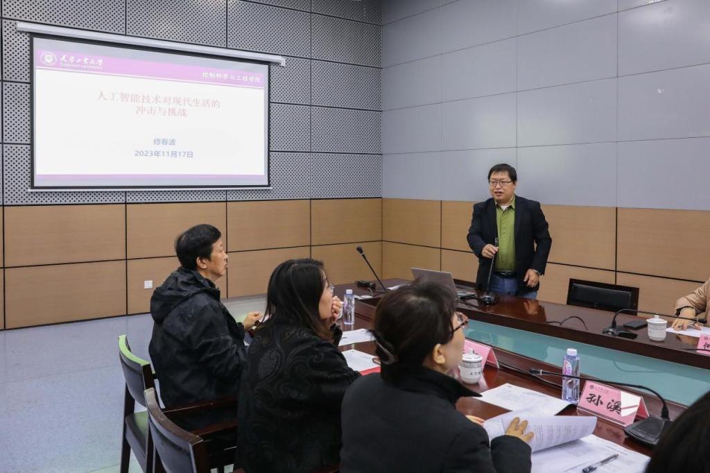 修春波教授为我校师生作了题为《人工智能技术对现代生活的冲击与挑战》的专家报告,深入浅出地介绍了人工智能的起源、深度学习研究情况及对现代生活的冲击与挑战,并探讨了人工智能技术在工程应用过程中的典型案例和思考。