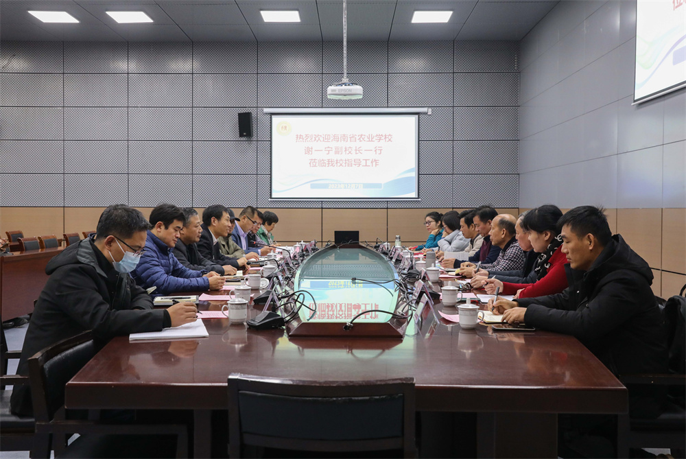 12月7日下午,海南省农业学校副校长谢一宁一行来我校调研。校党委常委、副校长张民会见了谢一宁一行,双方就深入推进校际交流合作事宜进行了座谈。