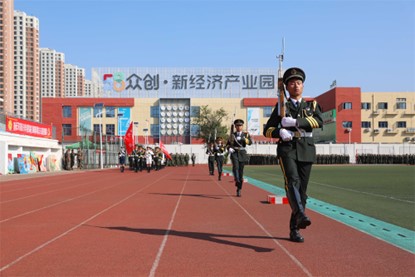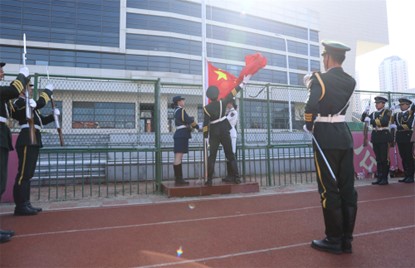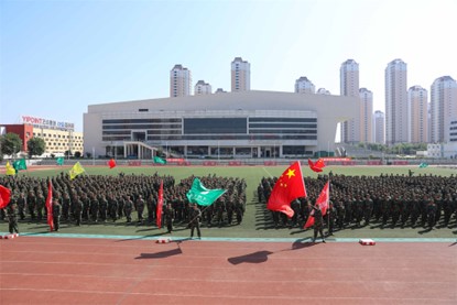 军训成果汇报大会在庄严的升国旗仪式中拉开帷幕。