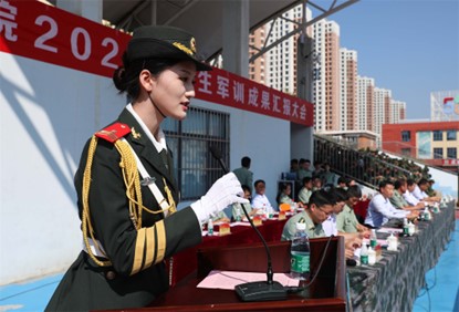 优秀参训学员代表、2022级水利工程学院魏昱瀛代表全体参训学员庄严承诺,将把军训中磨练的意志品格延续下来,主动做优良学风的营造者、文明校园的维护者、光盘行动的践行者、健康生活的引领者。