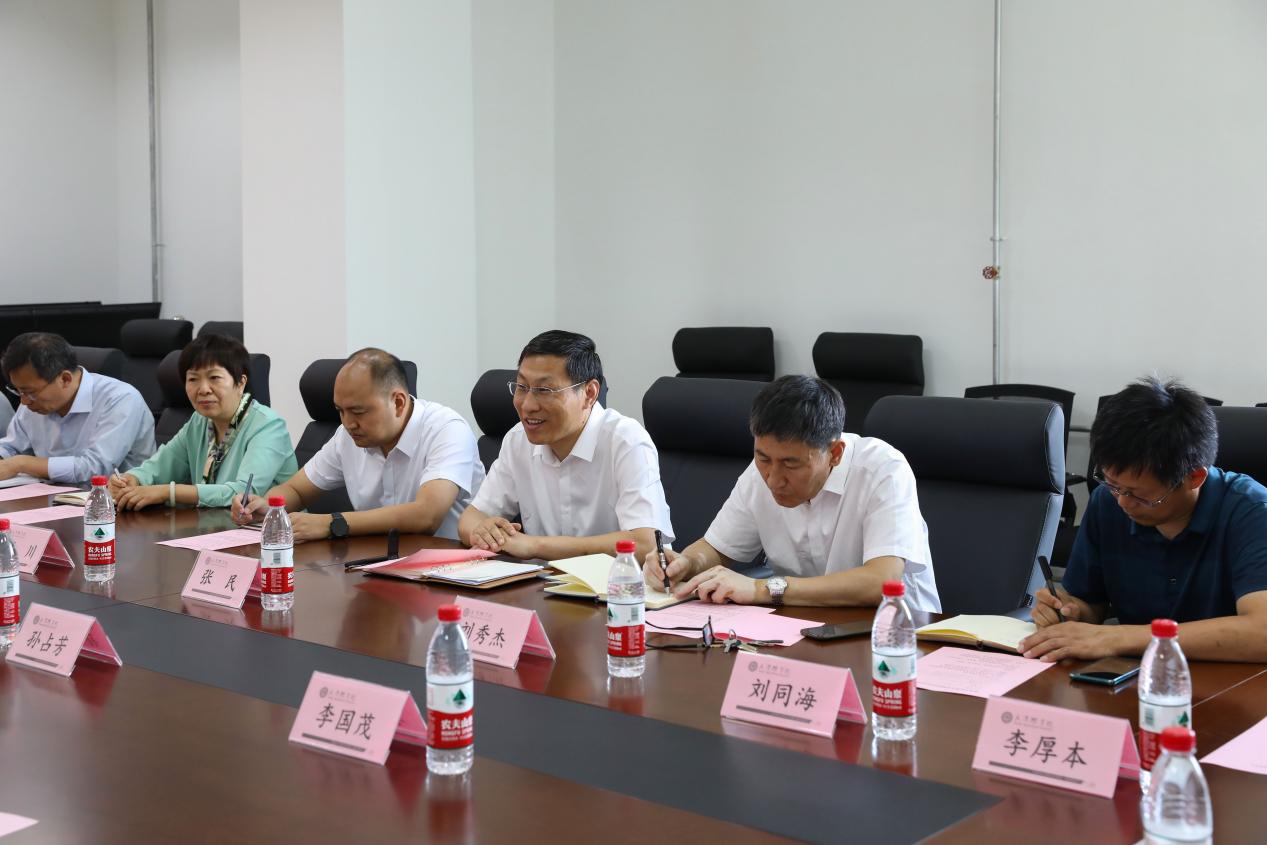 张民向来访客人介绍我校的办学历史、规模,学校现有学科门类、办学特色、科研平台以及近年来学校在人才培养、科学研究、社会服务等方面取得的成绩。他指出,威客电竞作为天津市唯一的农业院校具有独特的优势,在助力乡村振兴中发挥了重要作用。并就科研合作、研究生培养、治愈农业基地建设、乡村振兴事业等与来访客人展开深入交流。