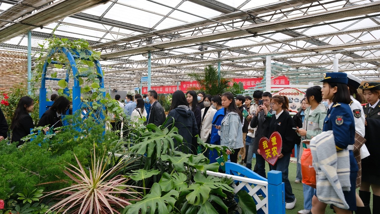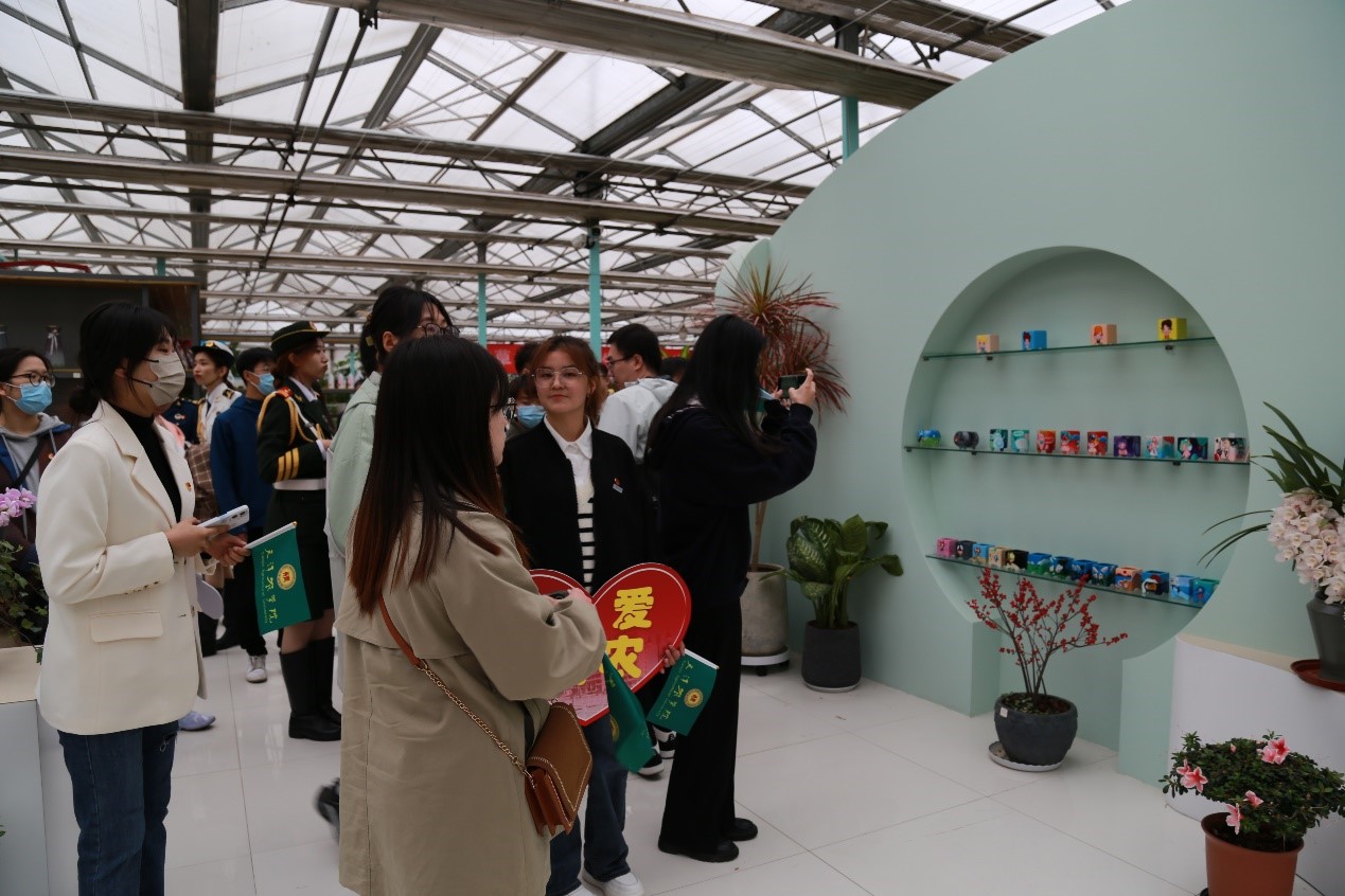 随后,研学团师生来到天津市园林花圃迎春花卉科研培育基地,在讲解员的带领下参观了花卉展区和多肉植物培养基地。现场花卉展品融合了现代手法和传统、民族的表现元素,让同学们了解了传统与现代相融合的园林艺术。就职于该单位的我校2017届园艺园林学院毕业生李响和师生开展交流,表达了对母校培养的感谢,交流了工作中用“花”语扮靓美丽天津的工作经历。