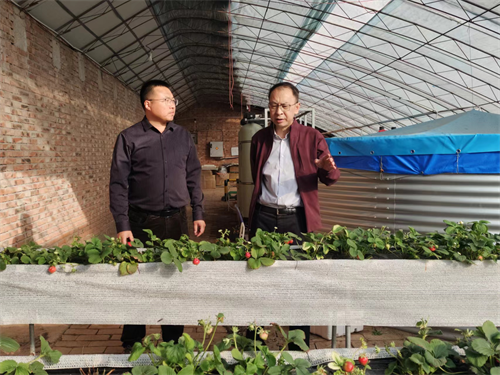 随后,王延文一行前往校友企业——天津由合农业科技服务有限公司,该公司由我校计算机与信息工程学院2004级校友孙崧于2016年创立。王延文一行参观了智慧农场草莓种植基地和羊肚菌种植基地。王延文对校友所取得的成绩表示祝贺,对校友企业的发展前景充满信心。他表示,校友是学校事业发展的宝贵财富,是母校无尚的骄傲和亮丽的名片,学校愿意提供技术和人才方面的支持,始终做校友企业发展的坚强后盾,欢迎校友经常回家看看,多提宝贵意见和建议,增进了解,加深合作,携手共进。孙崧介绍了公司主要致力于实现无土栽培技术,更好地满足人们对绿色生活、绿色食品的需求。他表示,与母校的领导及老师再相聚倍感亲切,甚感荣幸,希望加强与母校的交流与合作,为母校的发展贡献力量。