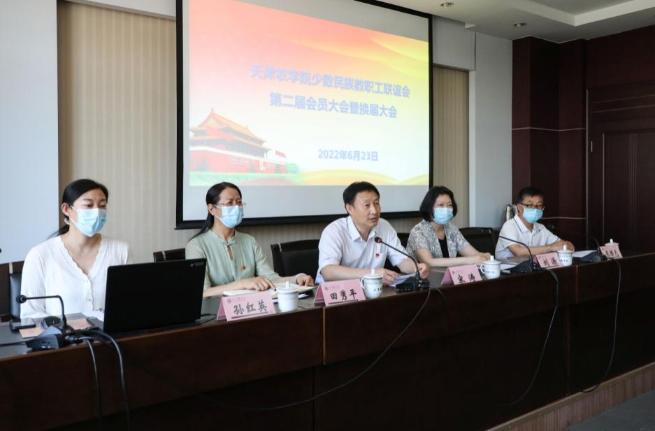 宋涛代表校党委向大会的召开表示热烈祝贺,他说,少数民族教职工是我校教师队伍中具有鲜明特色的一支力量,担负着维护民族团结和校园稳定的重要使命。第一届“民族联”理事会在学校党委的正确领导下,取得了很好的成绩。他希望新一届理事会,一要强化理论提升政治定力。持续深入学习贯彻习近平新时代中国特色社会主义思想,坚持马克思主义指导地位,不断增强“四个意识”,坚定“四个自信”,做到“两个维护”,始终与党中央保持高度一致,坚决站稳群众立场;二要增强教书育人责任感。牢记立德树人根本任务,团结带领广大少数民族教师在学校思政工作中发挥作用,树立天农教师良好师德师风形象;三要充分发挥凝心聚力作用。始终把关心关爱少数民族师生作为着力点,积极为大家解难事办实事、送爱心送温暖,团结各族师生像石榴籽一样紧紧抱在一起,不断铸牢中华民族共同体意识;四要加强自身建设,强化政治引领。发挥“民族联”桥梁纽带作用,加强班子和队伍建设,学习贯彻党的民族政策,为建设高水平农业大学汇聚强大合力。