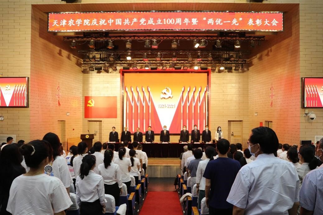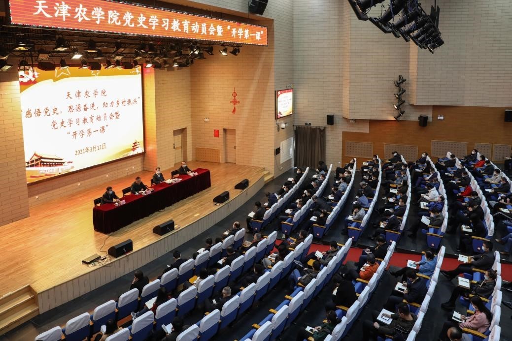 校党委将党史学习教育作为首要政治任务,结合自身实际,把“感悟党史,思源奋进,助力乡村振兴”作为主题主线,围绕强农兴农、服务“三农”的时代使命,及时召开党史学习教育动员大会、总结大会,将“我为群众办实事”贯穿全过程,凝练出“六个聚焦”的工作特色和经验做法。隆重召开庆祝中国共产党成立100周年暨“两优一先”表彰大会。全年发展党员507名,其中,发展教工党员12名,高知识群体党员9名,双高党员1名,实现发展数量和质量新突破。1人被评为天津市优秀共产党员,1个基层党组织被评为天津市先进基层党组织,1名学生荣获教育系统党史学习教育知识竞赛个人二等奖。在建党百年的重要时刻,举行“思源天农”文化景观落成揭幕仪式,在场师生共同高唱《没有共产党就没有新中国》,以此方式与全国人民共同庆祝党的百年华诞。师生代表录制歌唱视频《在希望的田野上》并在“学习强国”平台发布。我校248名师生参加庆祝中国共产党成立100周年《信仰的力量》天津市大中小学歌咏展演活动。严格落实疫情防控各项措施,组织动员广大党员干部在我市疫情防控攻坚战中冲在一线、担当作为,充分发挥党员先锋模范作用,与全市人民一起坚决筑牢疫情防控网。