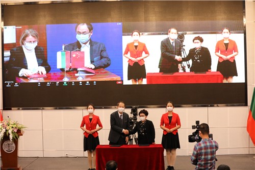 保加利亚鲁班工坊“云揭牌”暨启运仪式在我校和保加利亚普罗夫迪夫农业大学两个会场同步举行