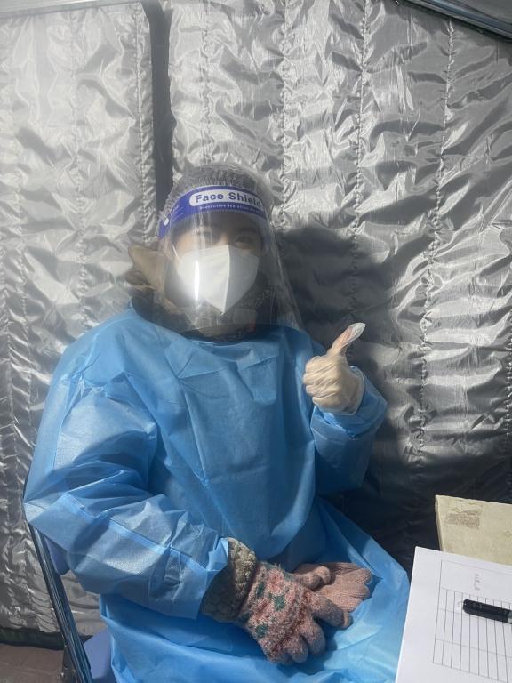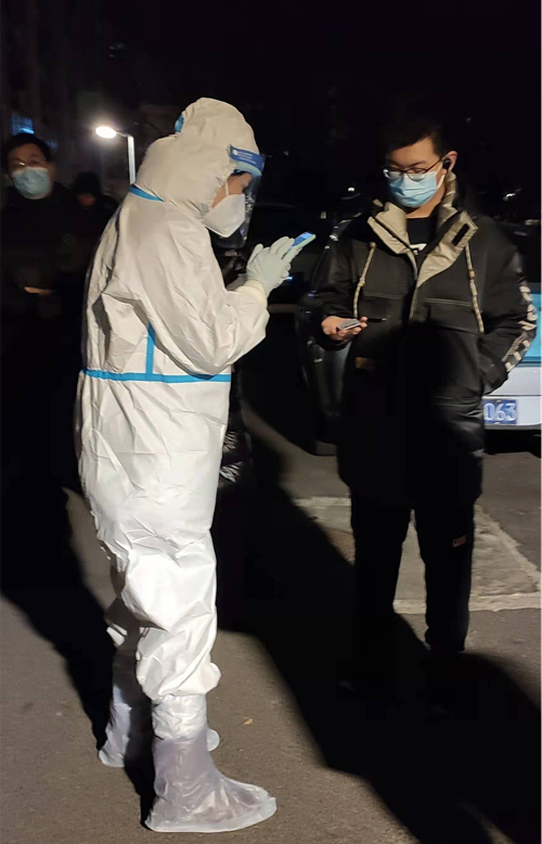 1月12日下午5:30,人文学院人力资源管理系教师张洪霞同志接到北辰区委组织部的通知,下沉到北辰区果园新村街东升里社区居委会,参与核酸筛查工作。她随即前往社区居委会,与医务人员一起连夜开展居民核酸检测工作。穿上防护服,迎着凛冽的寒风,立即上岗。她协助医生准备采样管、消杀、整理数据、录入信息。“虽然天气寒冷,手脚冻得冰凉,但是我的心却是暖的,能为抗疫尽一份心力,作为一名党员义不容辞。”