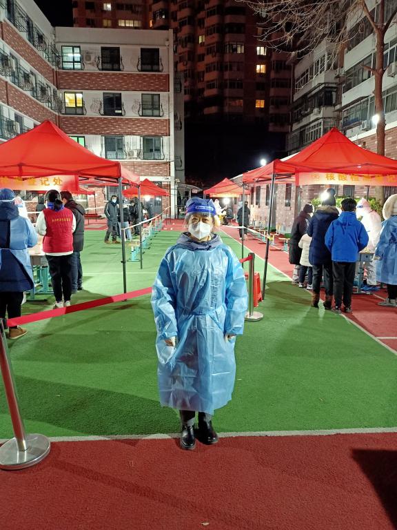 形势与政策教研室党支部书记曹丽颖老师自去年12月以来,先后三次参加和平区的社区防疫工作,完成了卫津路社区部分楼宇住户信息摸底与汇总、两轮核酸检测现场引导居民有序检测等工作。她顾不得腰椎疼痛,一趟又一趟地挨户上门通知核酸检测时间地点,一遍又一遍地提醒居民注意防护和保暖,一次又一次地与网格员联系确认需要入户检测的居民,现场协助老幼等特殊群体完成检测,全程参与社区防疫工作,受到群众们的夸赞。曹丽颖老师说:“作为党员在关键时刻就应该挺身而出,能够在抗疫中贡献一份力量,是自己的光荣!”