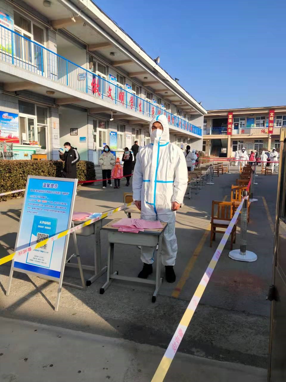 来自20级物联网工程专业的张衡同学,家住在蓟州区。身为退役士兵的他不忘初心,在疫情发生后迅速投入到家乡的疫情防控工作中,听从政府的指挥,哪里需要去哪里,通过实际行动发挥入党积极分子的模范带头作用,冲到防疫工作的第一位,在蓟州区全员筛查工作中,不畏寒冬冷风刺骨,不惧疫情的危险,引导核酸检测现场群众有序完成采样等环节,在抗击疫情中彰显了军人风采。在日后的疫情防控工作中,他依旧会牢记使命,全心全意为人民服务,积极投身疫情防控工作以及其他任务中。(学工部供稿;文字:迪里夏提·达列提江;编辑:黄宝霞;审校:田健)