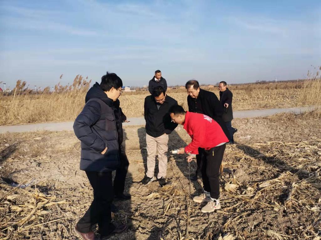 市农业农村委农建处处长韩冰介绍了我市近期盐碱地治理规划思路,并对我校开展盐碱地综合治理科研工作表示感谢和支持。市农业农村委种植业处处长王学忠、市农业发展服务中心副部长陈子学也与团队进行了深入交流。
