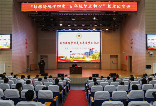 李朝阳以其思想政治理论课一线教学的丰富经验,结合生动鲜活的史实资料案例,呈现了一场富有思想性、理论性和亲和力、针对性的精彩报告,博得现场师生们的阵阵掌声。