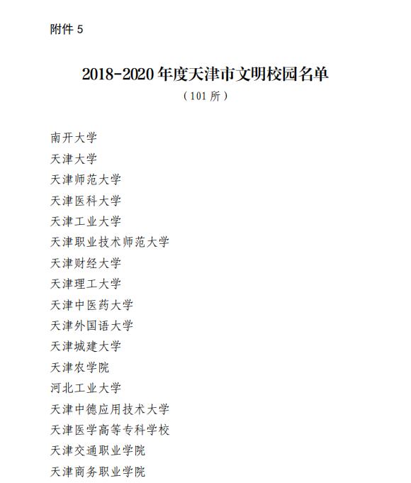 近日,天津市精神文明建设委员会公布了《关于表彰新一届天津市精神文明建设先进的决定》,我校荣获2018-2020年度天津市文明校园荣誉称号,这是我校办学治校进程中的又一个历史性突破。