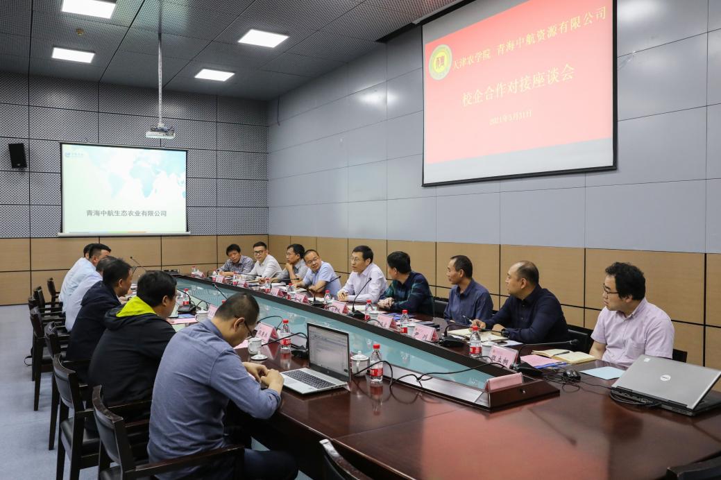 5月31日上午,青海中航资源有限公司董事长吴本农一行4人到访我校。我校召开与青海中航资源有限公司校企合作对接座谈会,会议同时邀请了天津奥群牧业有限公司副总经理段崇杰、技术总监张清峰博士参加。会前,校党委副书记、校长王延文会见了吴本农一行。校党委常委、副校长张民出席座谈会。