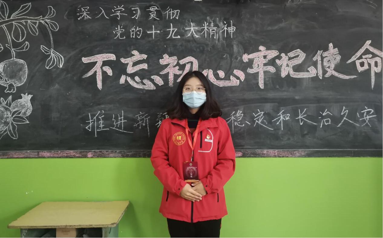 他们在关心关爱中,播撒着民族团结的种子。支教团成员古昕月同学所在的支教班有一名学生因脚受伤而行动不便。当该学生需要上洗手间时,她每次都主动抱着学生去,这一抱就是好几天。“虽然我身体单薄,但是在抱起小女孩的时候,我觉得身上充满着爱的力量。”她目光中充满着关爱。支教团成员吴卓倩在谈到自己来支教前的感受时表示,“援疆支教是埋在我心里的一颗种子,我热情地、悉心地浇灌,希望它能开出绚烂的沙漠之花。”接着,她说起支教过程中的一个小故事,让我们深深感到民族团结一家亲的真挚情感。“一天早上,我一直在忙着测量登记同学们的入园体温,这个时候有一双稚嫩的小手捧着已经剥好皮的橘子用着不太标准的语调小声地对我说‘给你,老师’,喜悦溢于言表。在接过橘子的那一刹那,我的心里暖暖的,久久难以平缓。”