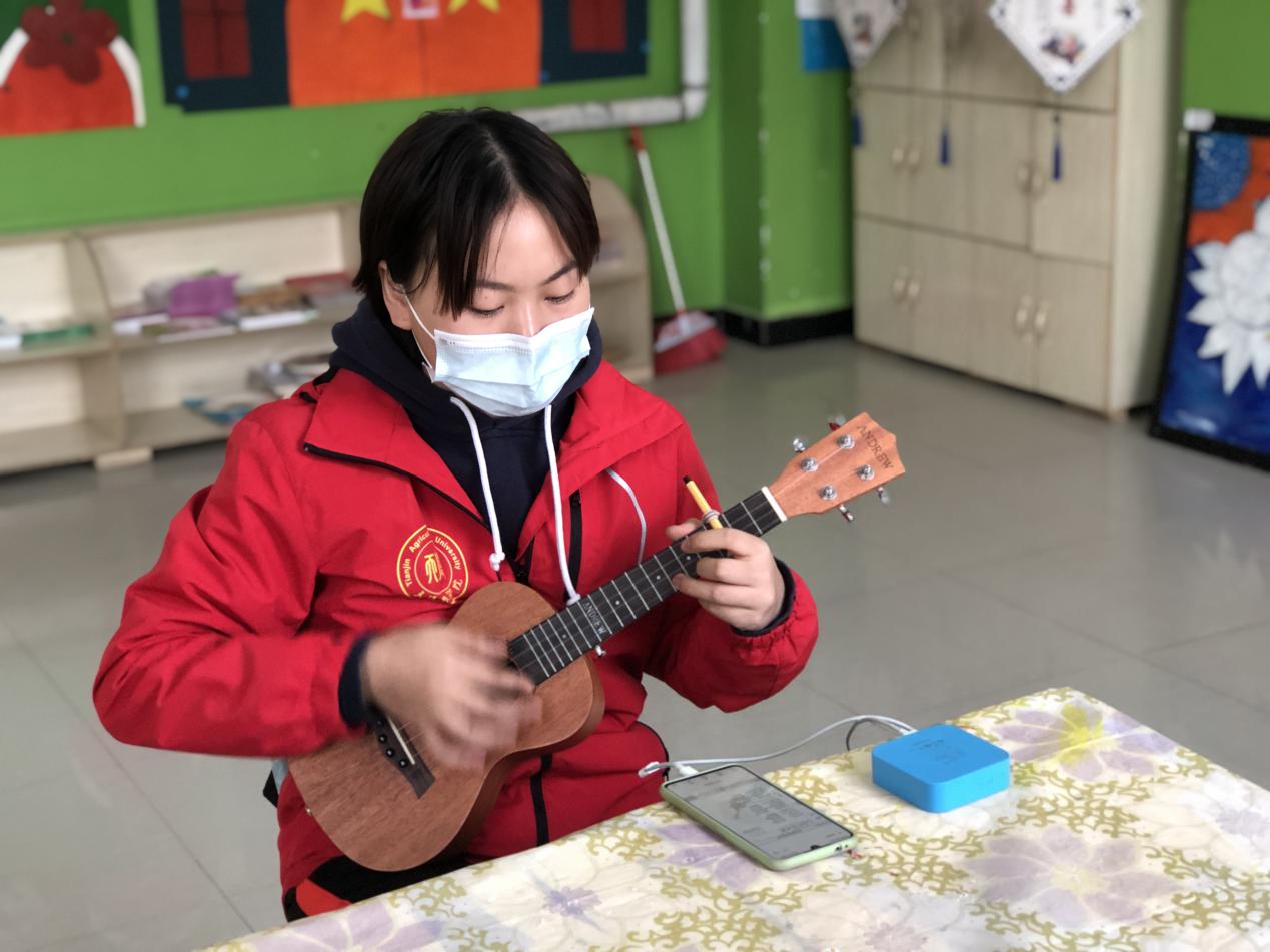 他们在传播知识中,滋润着学生的心田。支教团成员潘哲同学为了更快地适应工作,一遍又一遍地翻看指导用书,一次又一次向经验丰富的老教师请教。他希望能够竭尽所能,将更多的知识和中华优秀传统文化传授给孩子们。支教团成员吴卓倩同学在支教过程中,饱含热情对待每一节课,她结合支教班级情况,设计出很多有趣好玩的游戏,将天津元素与和田元素融入到教学中,取得了很好的效果。支教团成员黄佑倩发挥特长,在音乐课授课过场中,通过尤克里里弹唱伴奏,很短的时间内就教会了孩子们演唱《你笑起来真好看》。