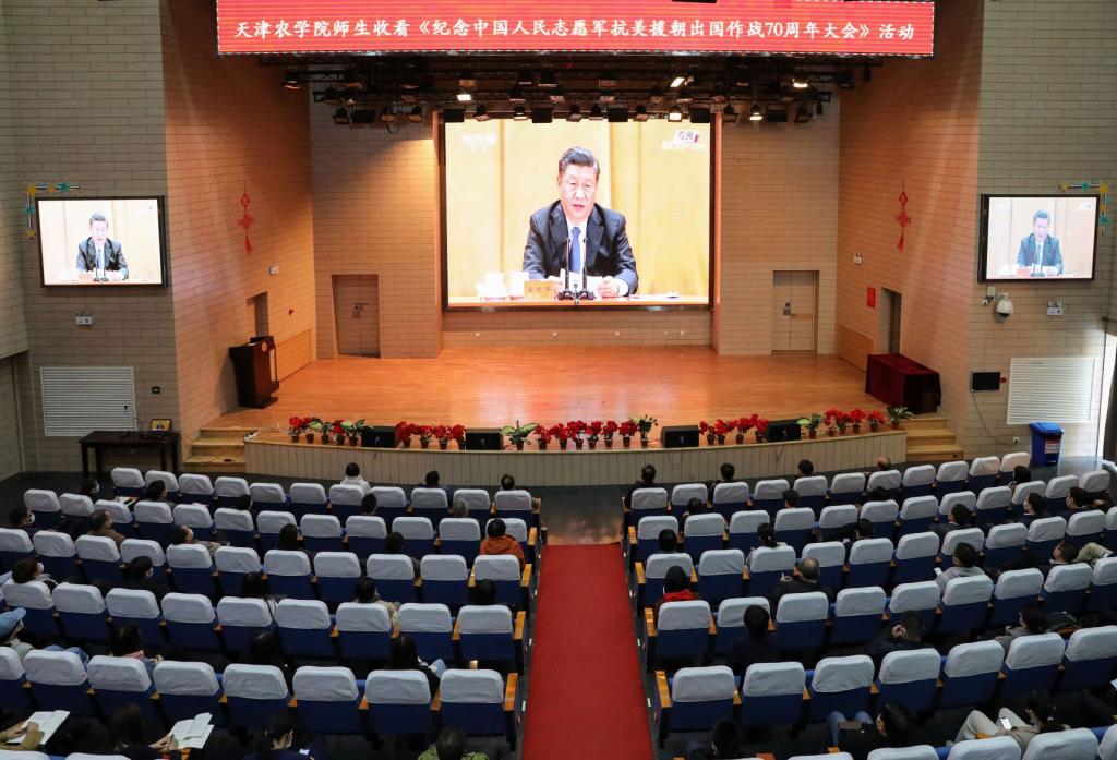 10月23日上午10时,纪念中国人民志愿军抗美援朝出国作战70周年大会在北京人民大会堂隆重举行,中共中央总书记、国家主席、中央军委主席习近平出席大会并发表重要讲话。我校全体校领导、校院两级党委理论学习中心组成员及广大师生通过多种方式认真收听收看本次大会实况。观看结束后,广大党员干部及师生员工心情澎湃,倍受鼓舞。