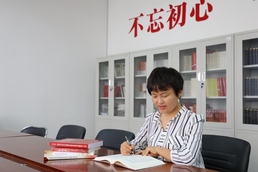 “书是人类进步的阶梯”,李老师在这一步步的阶梯中去规范与提升自己。读书始终是李老师最主要的生活的方式。在李老师的办公桌上摆放着一大摞书,除了马克思主义经典原著之外,涉及教育、社会、历史、文化等方方面面,可见,李老师博览群书,做到了“博”“精”“专”。她不仅享受读书时思想洗礼的过程,更享受与伟人进行心灵对话的过程。谈到这里,李老师洋溢着幸福、谦逊和儒雅的神态。