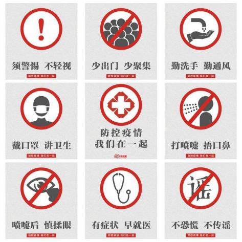 学校官方网站、官方微信公众号推送了一些防控知识,大家多多关注,做到勤洗手、常通风,少出行、不聚会,出门戴口罩。我们也要树立必胜的信心,回想一下,我们伟大的祖国和人民在经历过的困难面前,从未退缩过,也未被打倒过,这场“疫情”之战的胜利就在不久的将来,让我们用实际行动为打赢疫情防控的人民战争、总体战、阻击战贡献青春力量,展现青年风采。