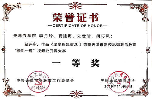 作品《坚定理想信念》获得天津市高校思想政治教育“精彩一课”视频公开课大赛一等奖