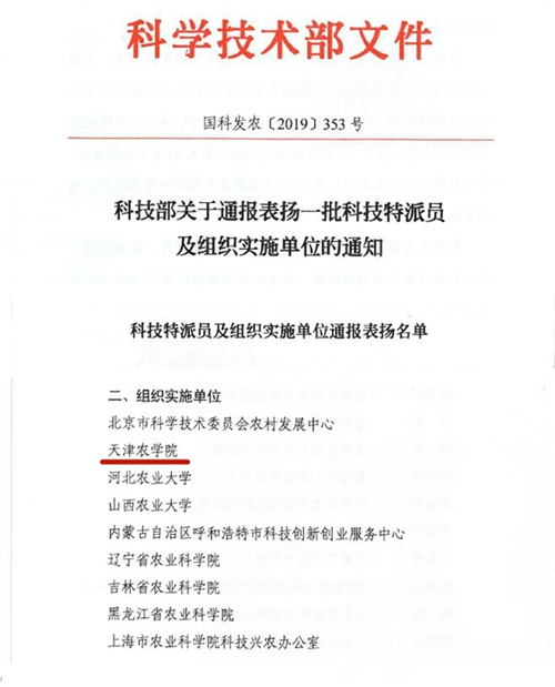 我校作为科技特派员组织实施单位受到科技部通报表扬