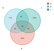 图1 樱桃谷肉鸭肠道微生物菌群OTU数目Venn图