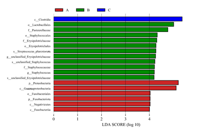 图3 樱桃谷肉鸭肠道优势菌群差异物种分析