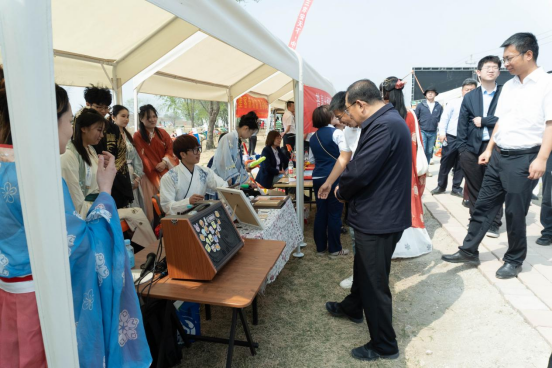 活动中,同学们分成汉服走秀组、文创书法组和摄影宣传组。汉服走秀组身穿汉服穿梭在油菜花海中,汉服在阳光下熠熠生辉,其瑰丽风采令人陶醉,与油菜花海融为一体,形成一幅唯美画面。