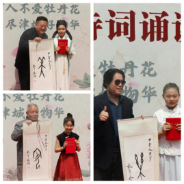 活动伊始,由天农学子带来开场舞《放灯行》。随后,昆明路小学的选手们身着各式传统服饰,或深情款款地诵读古诗,或慷慨激昂地朗诵现代诗篇,用声音诠释着牡丹花的美丽与坚韧,展现了对诗词的热爱和才华。他们的精彩表现不仅赢得了评委的高度评价,也让现场观众深刻感受到了中华文化的博大精深。评委们根据学生们的诵读表现、语音语调、情感表达等方面进行了认真评分。经过激烈的竞争,最终评选出了各奖项的获得者,朱彦民教授为前三名获奖同学书写了甲骨文“美、安、乐”,现场颁发了荣誉证书和奖品。此次大赛是水利工程学院和昆明路小学加强大中小思政一体化建设的重要内容之一。最后,以学生代表的诗朗诵《春》为结尾,宣告本次活动圆满完成。