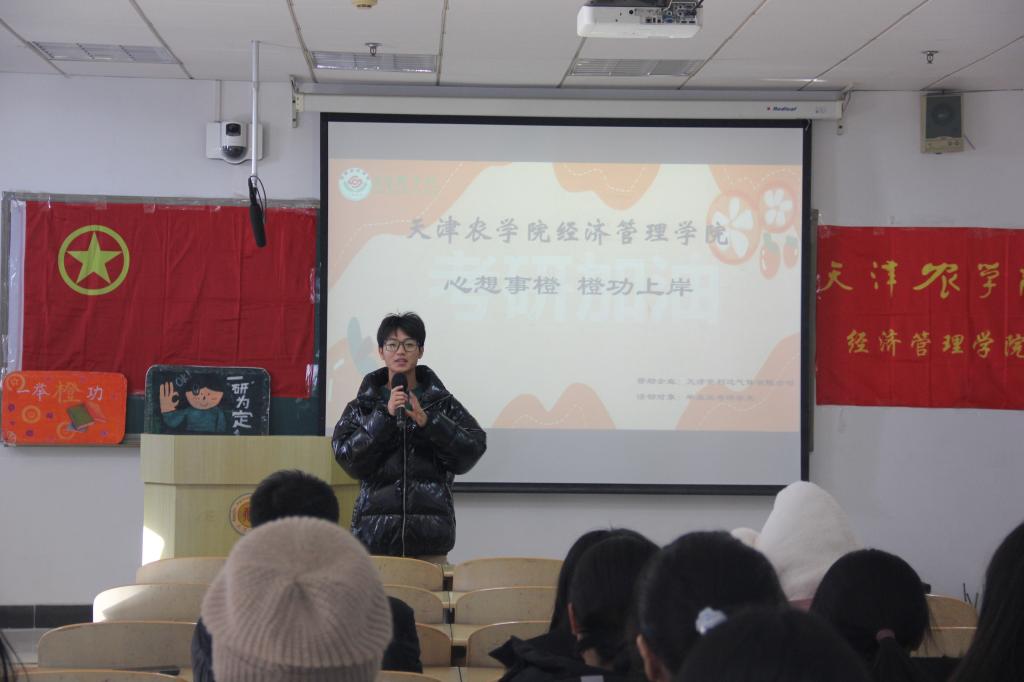 活动中,天津安利达气体有限公司赞助的300多个橙子,带着学院师生的关心和祝福,为考研学子送上了充满温情与寓意的礼物和祝福。考研学子罗兰海、潘美玉代表全院226名考研学子发言,希望大家保障睡眠,放平心态,怀揣信心,于研途中获得成长,于辛苦中尝到甘甜,最终都能够成功实现自己的考研梦。在校生代表张思佳、李树宽致敬考研学长学姐,奋斗终不负青春!终会“一举‘橙’功”。王金毅老师和李航老师作为教师代表表达了学院领导和老师对考研学子满满的祝愿,希望他们考上自己心仪院校,实现心中的志向和抱负。