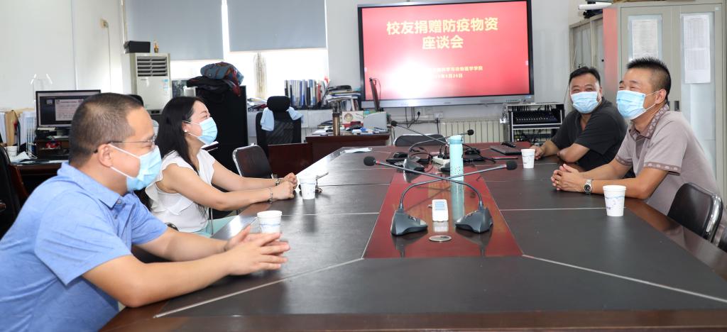 在全校师生齐心协力,全力为新学期开学做准备的关键时刻,8月26日,我校2000届校友、天津欣燕都商贸有限公司总经理杨明锁向动物科学与动物医学学院捐赠2400只口罩和180瓶84消毒液,用于学院新冠肺炎疫情防控工作,院党委书记于建强、副院长(主持工作)李留安、学生工作副书记王学蓓、学工办主任王永利出席了捐赠仪式。
