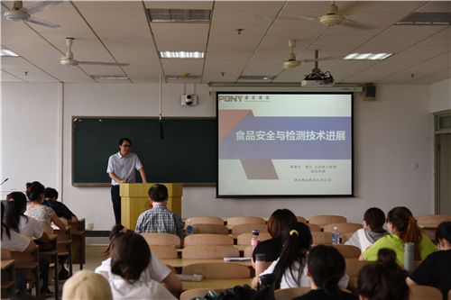 近日,谱尼测试科技(天津)有限公司副总经理廖振宇博士受邀做客“天农名家讲堂”,为食品科学与生物工程学院师生作了题为“食品安全与检测技术进展”的学术报告。